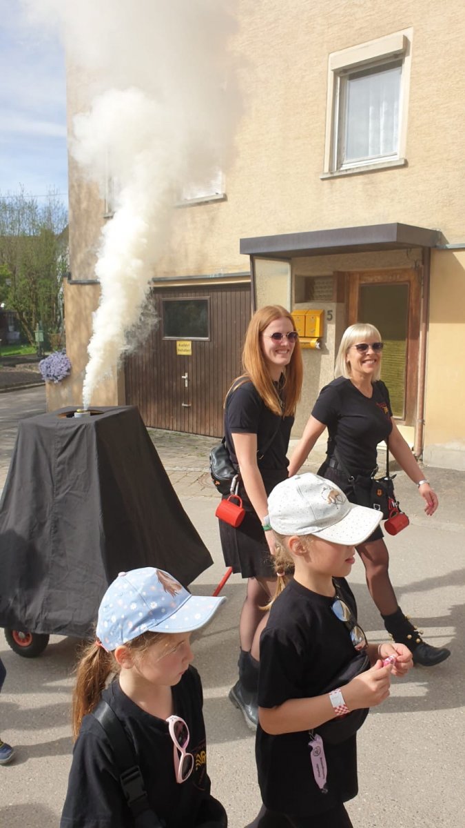 Jubiläumsumzug „175 Jahre Auendorf“ am 13.04.2024 Auendorf_26 Bild 21 von 32 der Baby Vulkan quartzt schon wie sein großer Bruder