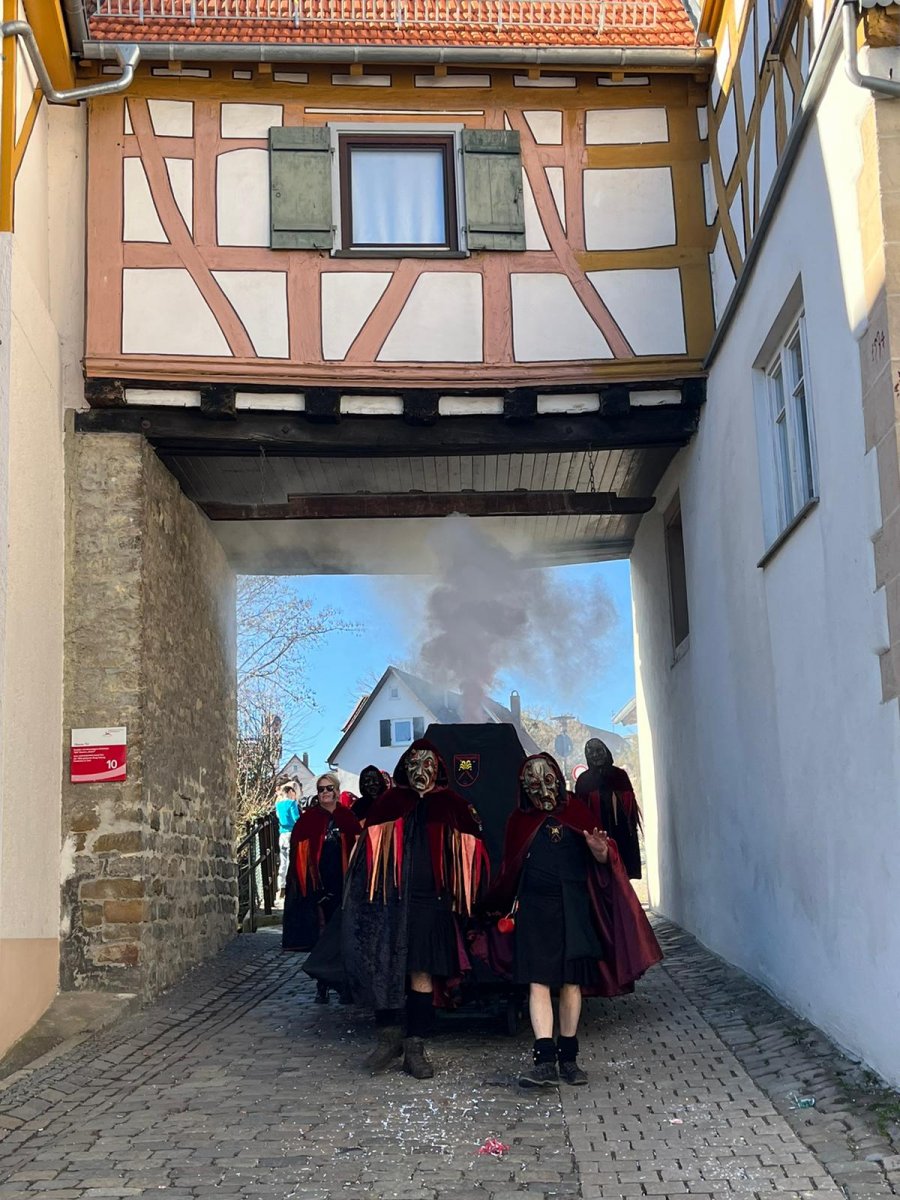 Umzug Furchenrutscher in Rechberghausenund Narrenbaumfällen am 21.02.2023 06 Bild 6 von 19 und er fällt, und fällt, und fällt…